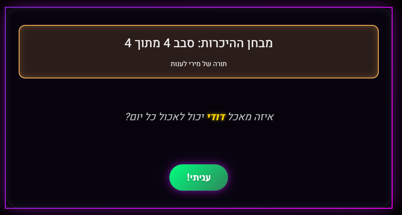 המשחק נבנה כך שבכל פעם יהיו שאלות ושילובים אחרים ומפתיעים,