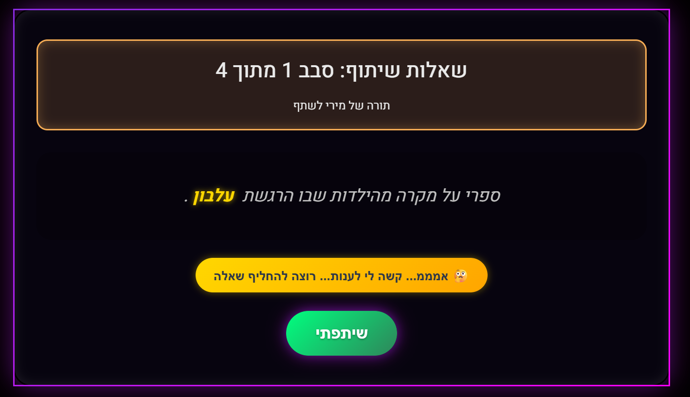 זה משחק של שאלות שיח רגשי לזוגות.